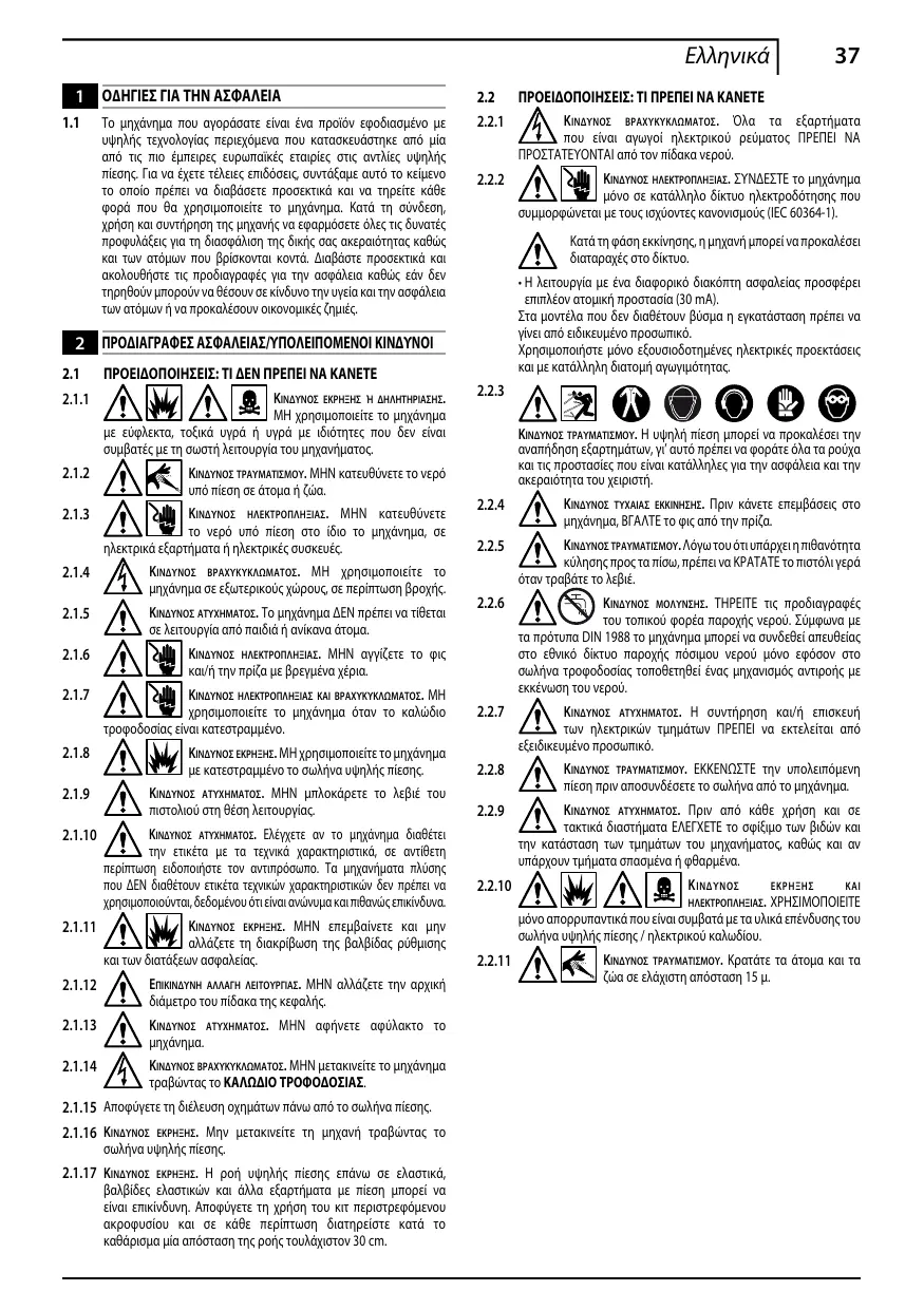 2.2.1 • Dans ce cas, le fonctionnement avec un disjoncteur différentiel de sécurité offre une protection personnelle supplémentaire (30 mA). Sur les modèles sans fiche, l'installation doit être effectuée par du personnel qualifié. N’utilisez que des rallonges électriques autorisées et avec une section appropriée.