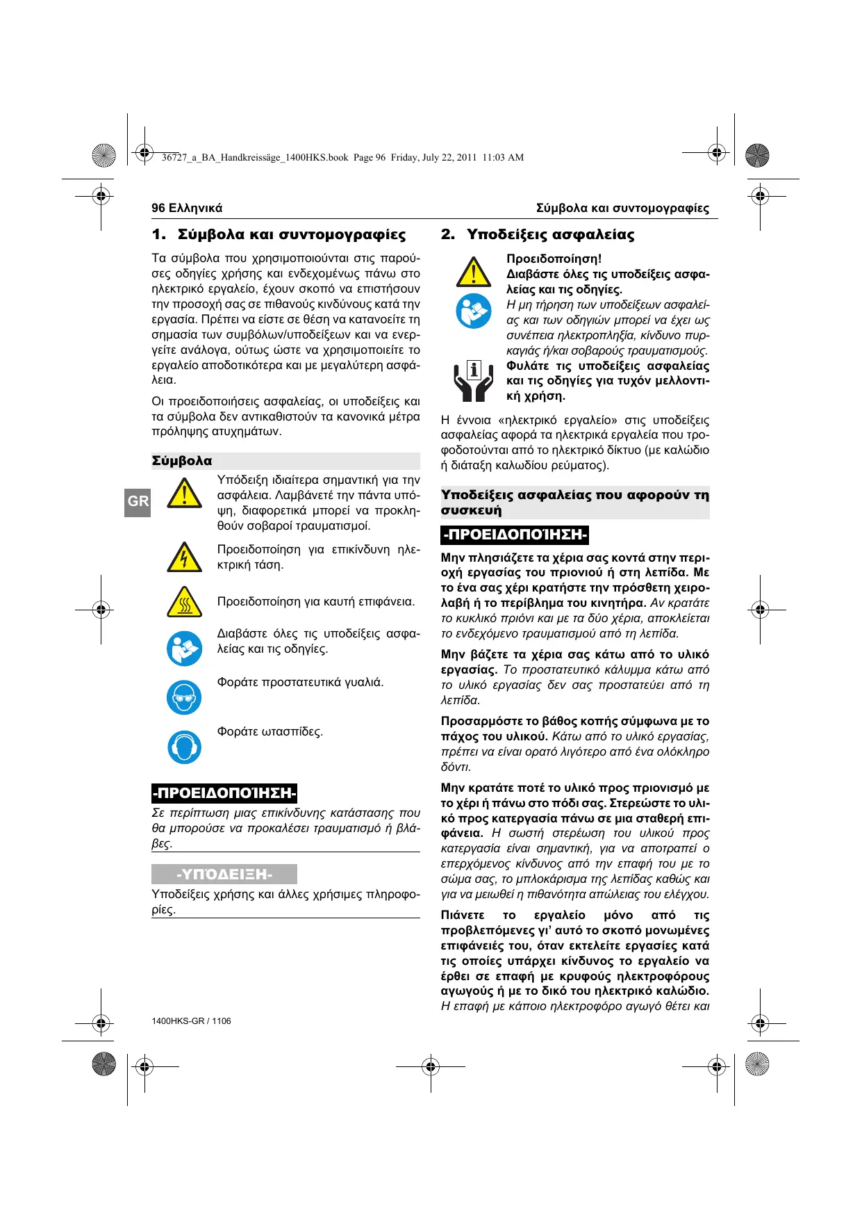 Κατεβάστε τις οδηγίες για το κυκλικός πριόνι σε μορφή PDF δωρεάν! Βρείτε το εγχειρίδιό σας 1400 HKS - KRESS και πάρτε ξανά την ηλεκτρονική σας συσκευή στα χέρια σας. Σε αυτή τη σελίδα δημοσιεύονται όλα τα έγγραφα που απαιτούνται για τη χρήση της συσκευής σας. 1400 HKS της μάρκας KRESS.