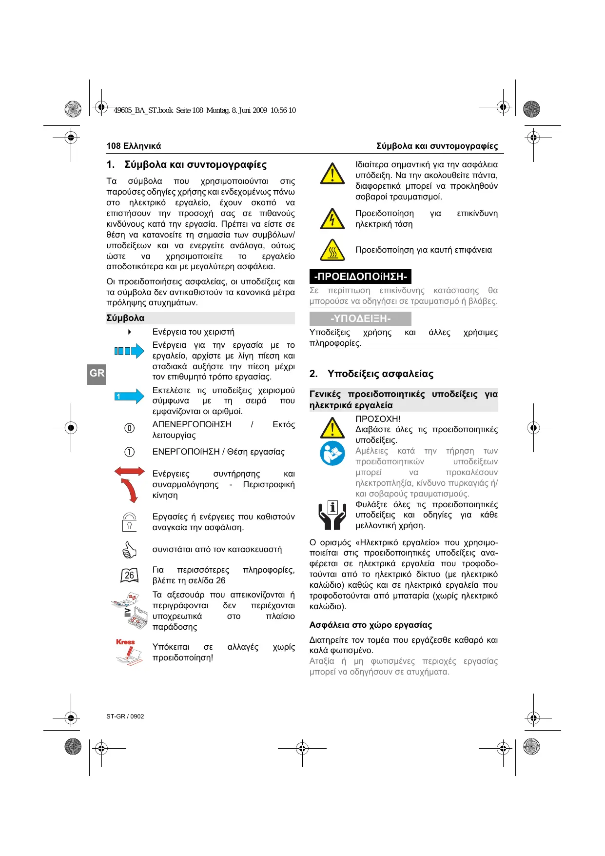 ST-FI / 0902 49605_BA_ST.book Seite 108 Montag, 8. Juni 2009 10:56 10 Πρωτότυπο οδηγιών χρήσης "Σέγα“ 108 Eλληνικά Σύμβολα και συντομογραφίες
