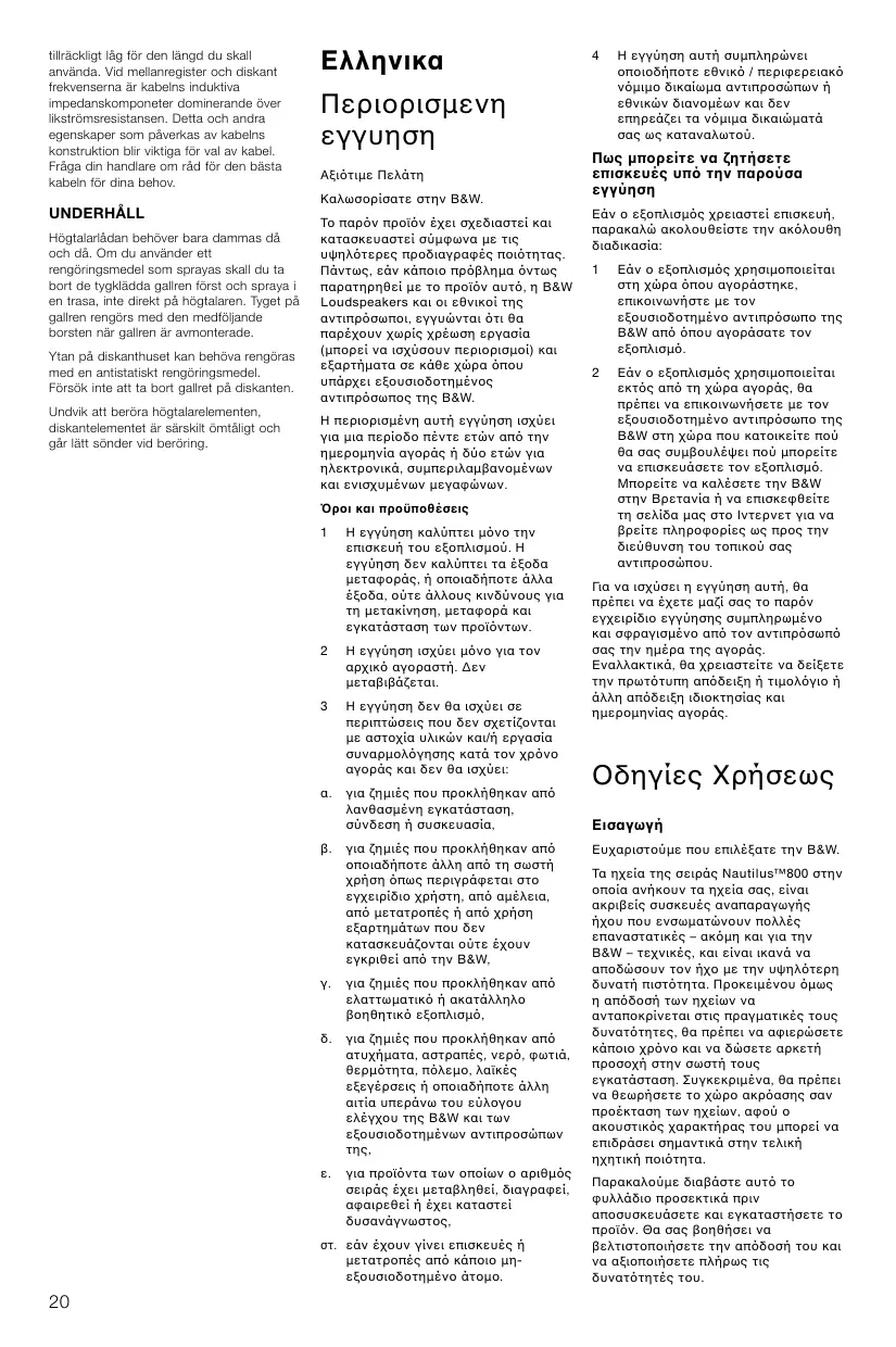 Ελληνικά Περιορισµένη εγγύηση 20 Οδηγίες Χρήσεως ....20