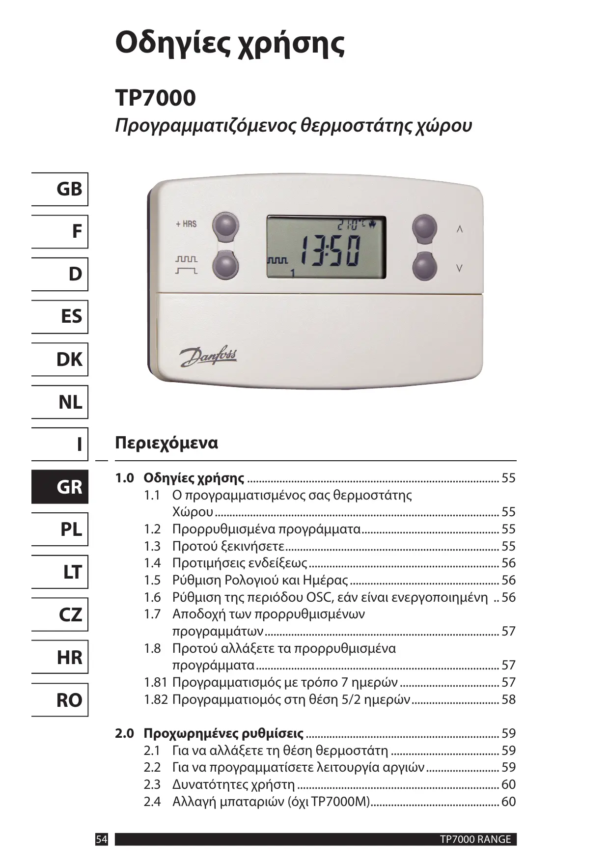 TP7000 - Προγραμματιζόμενος θερμοστάτης DANFOSS - Notice d'utilisation et mode d'emploi gratuit