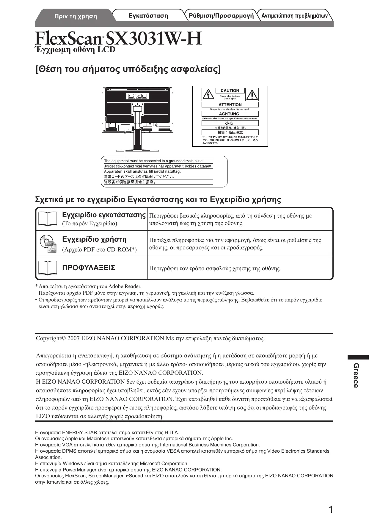FLEXSCAN SX3031W - Επαγγελματική οθόνη EIZO - Δωρεάν εγχειρίδιο χρήσης