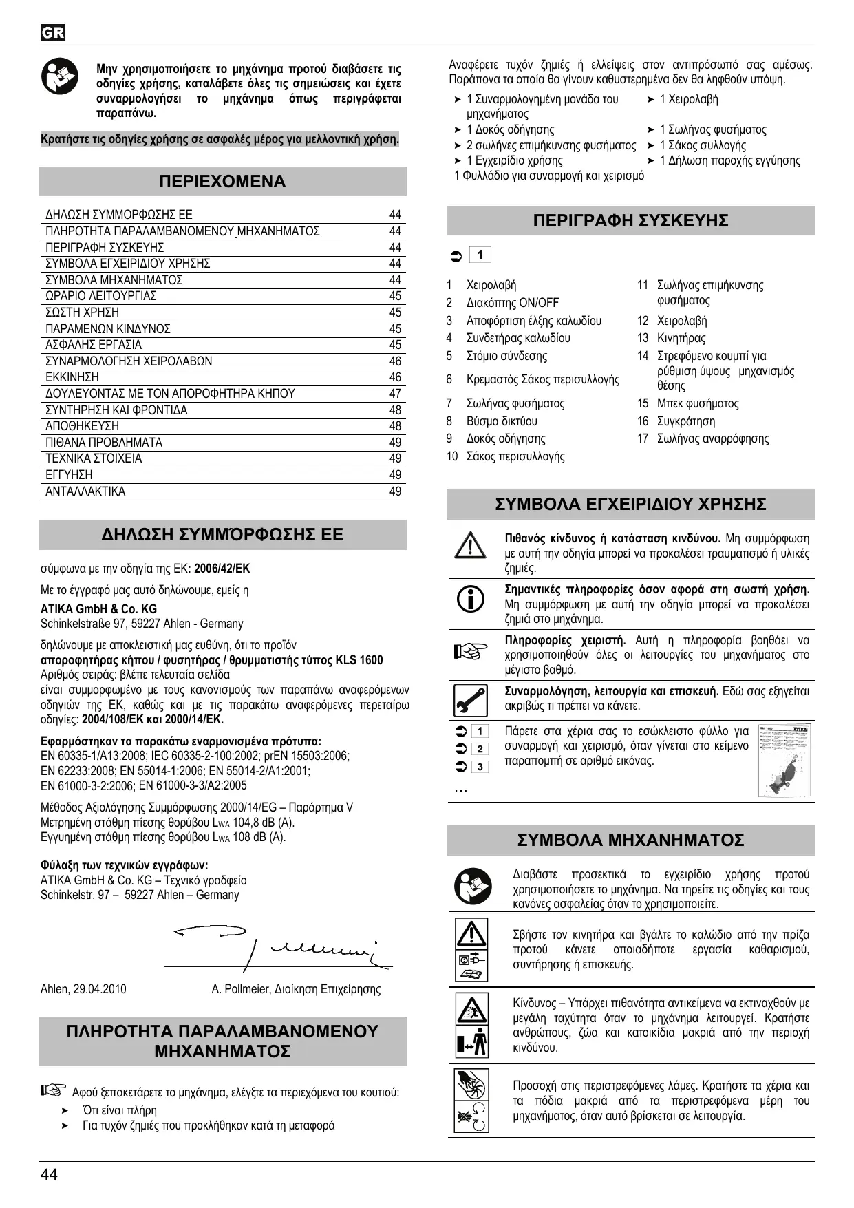 Téléchargez la notice de votre ανεπιβεβαίωτο au format PDF gratuitement ! Retrouvez votre notice KLS 1600 - ATIKA et reprennez votre appareil électronique en main. Sur cette page sont publiés tous les documents nécessaires à l'utilisation de votre appareil KLS 1600 de la marque ATIKA.