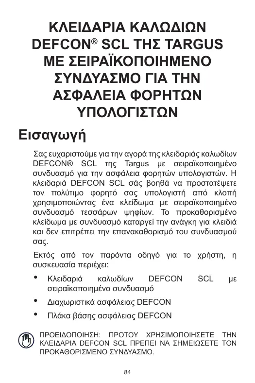 NOTEBOOK SECURITY DEFCON SCL - Ασφάλεια για φορητούς υπολογιστές TARGUS - Notice d'utilisation et mode d'emploi gratuit
