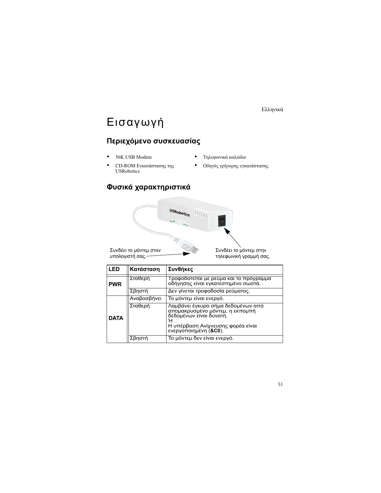 56K USB MODEM - μόντεμ US ROBOTICS - Notice d'utilisation et mode d'emploi gratuit
