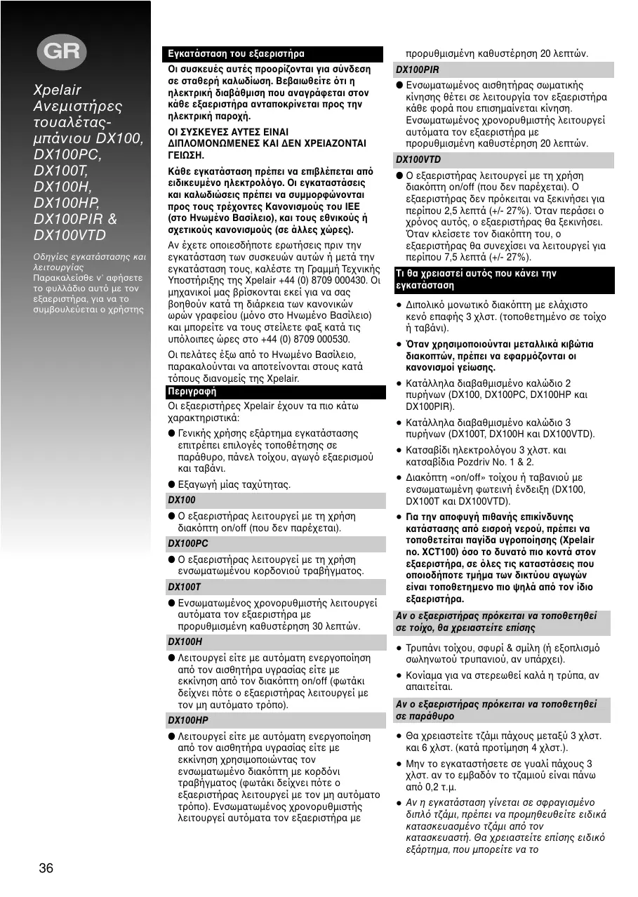 DX100HP - ανεμιστήρας APPLIED ENERGY - Δωρεάν εγχειρίδιο χρήσης