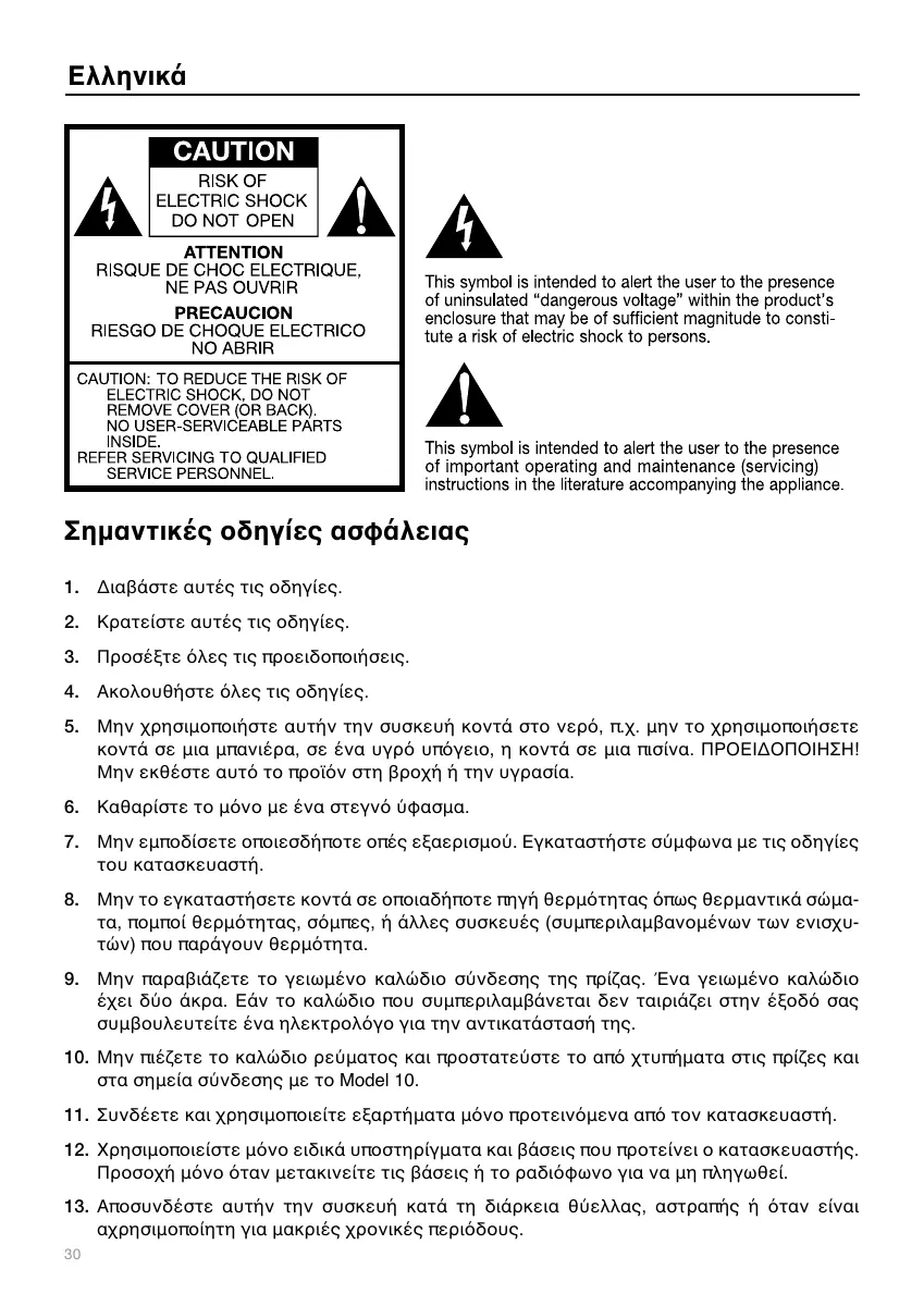 του κατασκευαστή. 8. Μην το εγκαταστήσετε κοντά σε οποιαδήποτε πηγή θερμότητας όπως θερμαντικά σώματα, πομποί θερμότητας, σόμπες, ή άλλες συσκευές (συμπεριλαμβανομένων των ενισχυτών) που παράγουν θερμότητα.