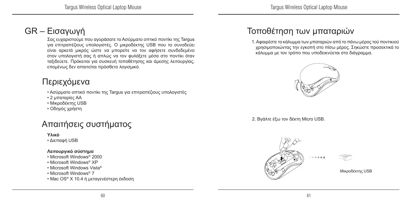 Téléchargez la notice de votre Ασύρματο ποντίκι au format PDF gratuitement ! Retrouvez votre notice WIRELESS OPTICAL LAPTOP MOUSE - TARGUS et reprennez votre appareil électronique en main. Sur cette page sont publiés tous les documents nécessaires à l'utilisation de votre appareil WIRELESS OPTICAL LAPTOP MOUSE de la marque TARGUS.