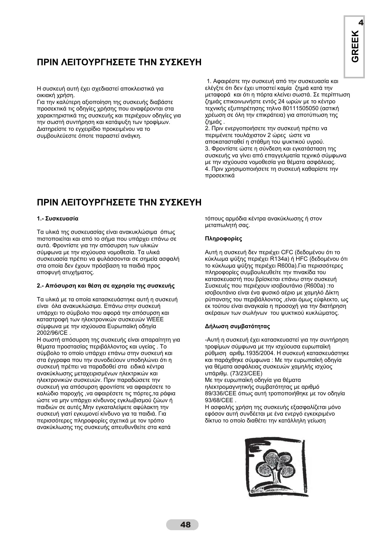 IPOsOXH : TTo TEaos Tou Kukau Opnns Tns OoKEuug aTooupete TnV OoKEun oUoWvA u Tnv odnyia WEEE. H OoKEun TepieXeI To uKtiko Uypo R600a kai eva eUfAekto aepio oOpfn aPpou Tou Xpnoipoiietai yia movon