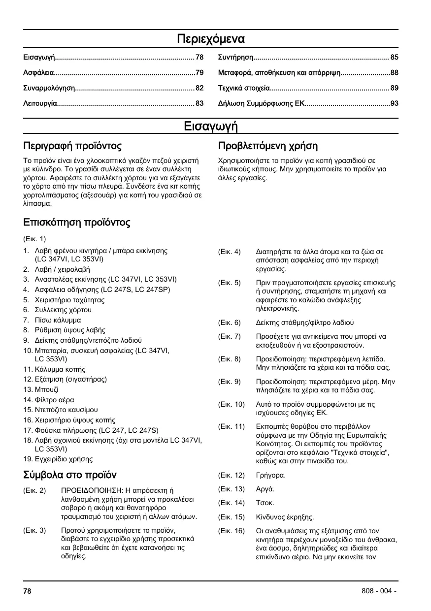 17. Bomba de combustível (LC 247, LC 247S) 18. Punho do cabo de arranque (não nos modelos LC 347VI, LC 353VI) +46‐36-146500, declara que os corta-relvas Husqvarna, LC 247, LC 247S, LC 247SP, LC 253S, LC 347V, LC 347VI, LC 353V e LC 353VI com os números de série 2016xxxxxxx e posteriores cumprem as disposições constantes na DIRETIVA DO CONSELHO: Nota: Întotdeauna înlocuiți un filtru de aer deteriorat.