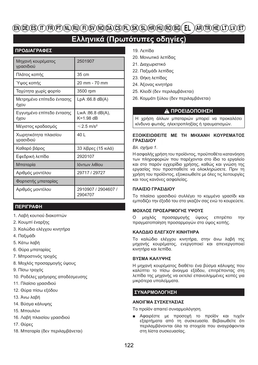 Téléchargez la notice de votre ηλεκτρικό χλοοκοπτικό au format PDF gratuitement ! Retrouvez votre notice G40LM35 - G40LM35K2 - G40LM41 - G40LM45K4 - GD40LM45 - GD40LM46SP - GREENWORKS et reprennez votre appareil électronique en main. Sur cette page sont publiés tous les documents nécessaires à l'utilisation de votre appareil G40LM35 - G40LM35K2 - G40LM41 - G40LM45K4 - GD40LM45 - GD40LM46SP de la marque GREENWORKS.