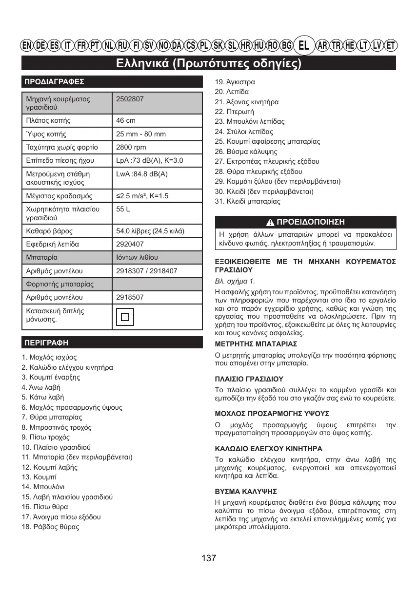 Téléchargez la notice de votre Ασύρματα χλοοκοπτικά au format PDF gratuitement ! Retrouvez votre notice GD60LM46HP - GD60LM46SPK4 - GD60LM51SPK4 - GREENWORKS et reprennez votre appareil électronique en main. Sur cette page sont publiés tous les documents nécessaires à l'utilisation de votre appareil GD60LM46HP - GD60LM46SPK4 - GD60LM51SPK4 de la marque GREENWORKS.