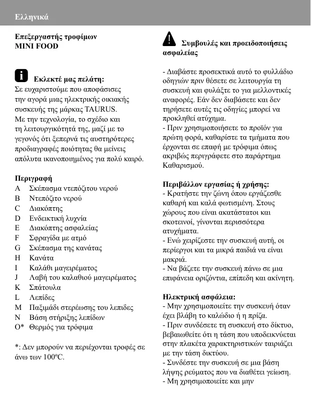 ROBOT DE CUISINE A VAPEUR 925004 - Κουζινομηχανή TAURUS - Notice d'utilisation et mode d'emploi gratuit