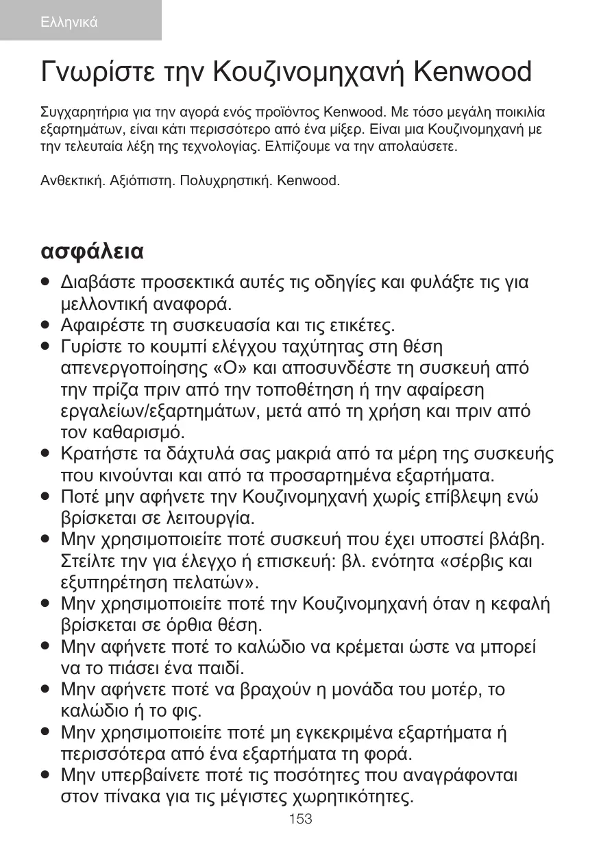 Ekkgmij Γνωρίστε την Κουζινομηχανή Kenwood Συγχαρητήρια για την αγορά ενός προϊόντος Kenwood. Με τόσο μεγάλη ποικιλία εξαρτημάτων, είναι κάτι περισσότερο από ένα μίξερ. Είναι μια Κουζινομηχανή με την τελευταία λέξη της τεχνολογίας. Ελπίζουμε να την απολαύσετε. Ανθεκτική. Αξιόπιστη. Πολυχρηστική. Kenwood.