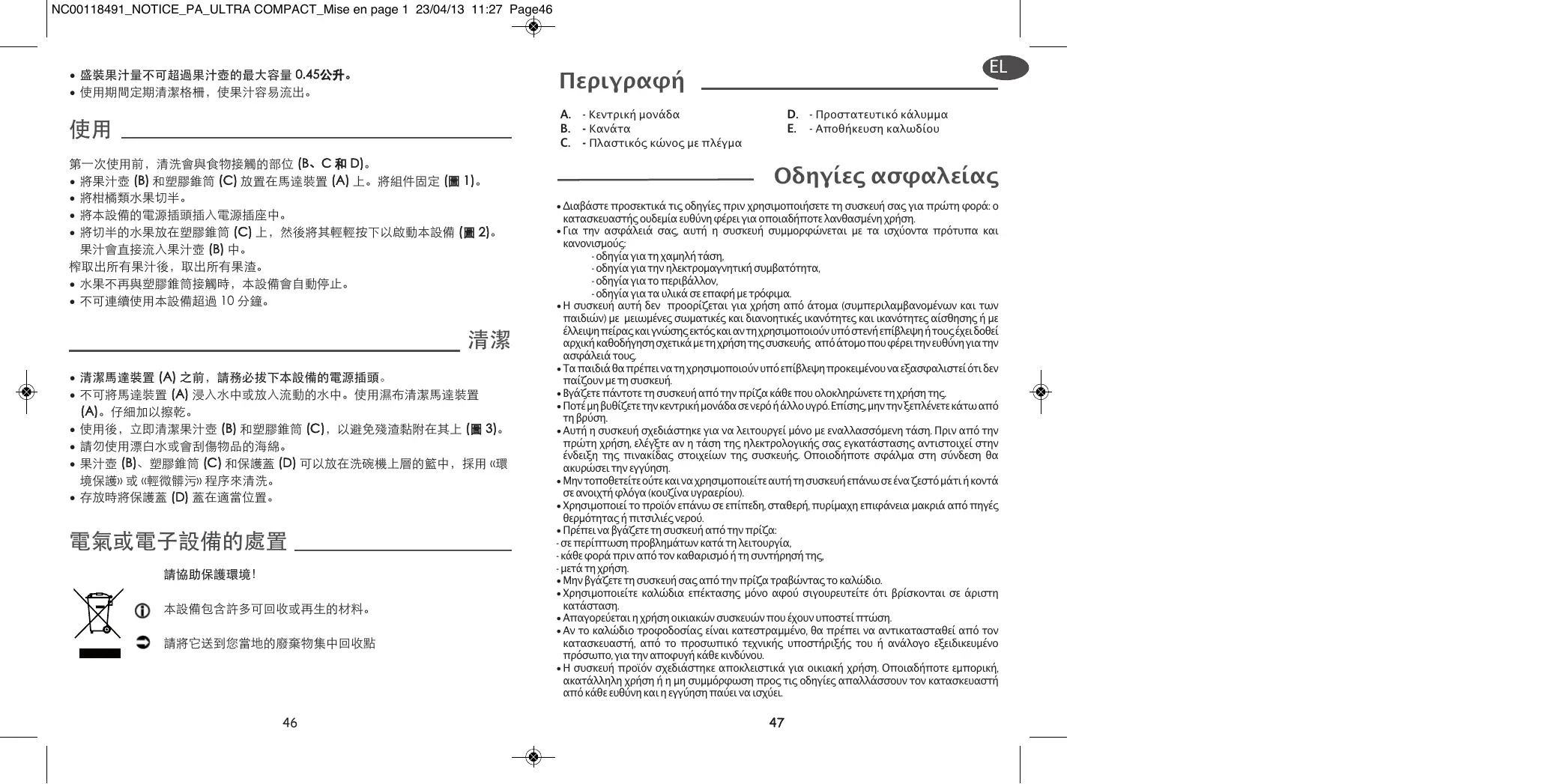 ΕΓΧΕΙΡΊΔΙΟ ΧΡΉΣΗΣ PC603D10 MOULINEX