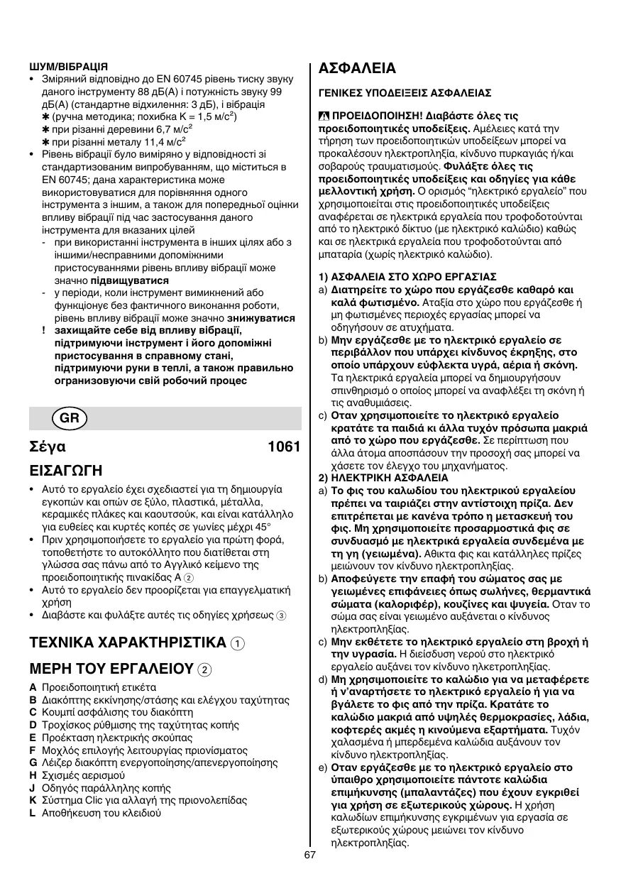 • Cet outil est conçu pour effectuer des découpes et coupes dans le bois, les matières plastiques, le métal, les plaques en céramique et le caoutchouc, et est approprié pour des coupes droites et curvilignes avec des angles d’onglet jusqu’à 45°