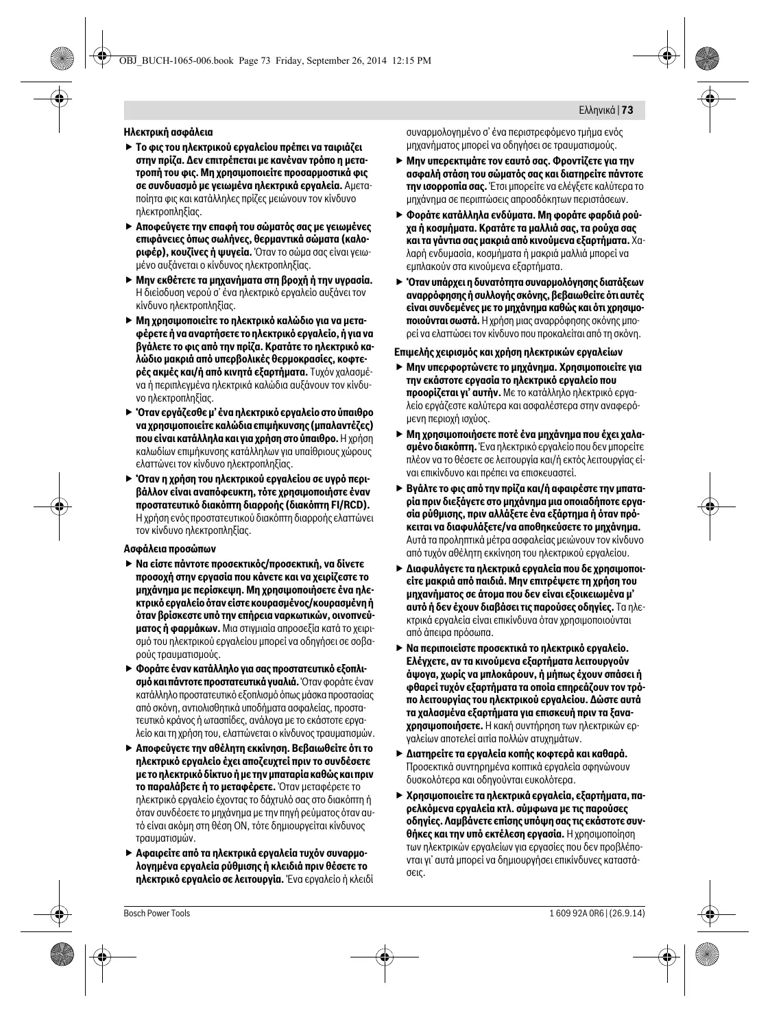 Il est impératif de lire toutes les consignes de sécurité et toutes les instructions. Le non-respect des avertissements et instructions indiqués ci-après peut conduire à une électrocution, un incendie et/ou de graves blessures. 1 609 92A 0R6 | (26.9.14)