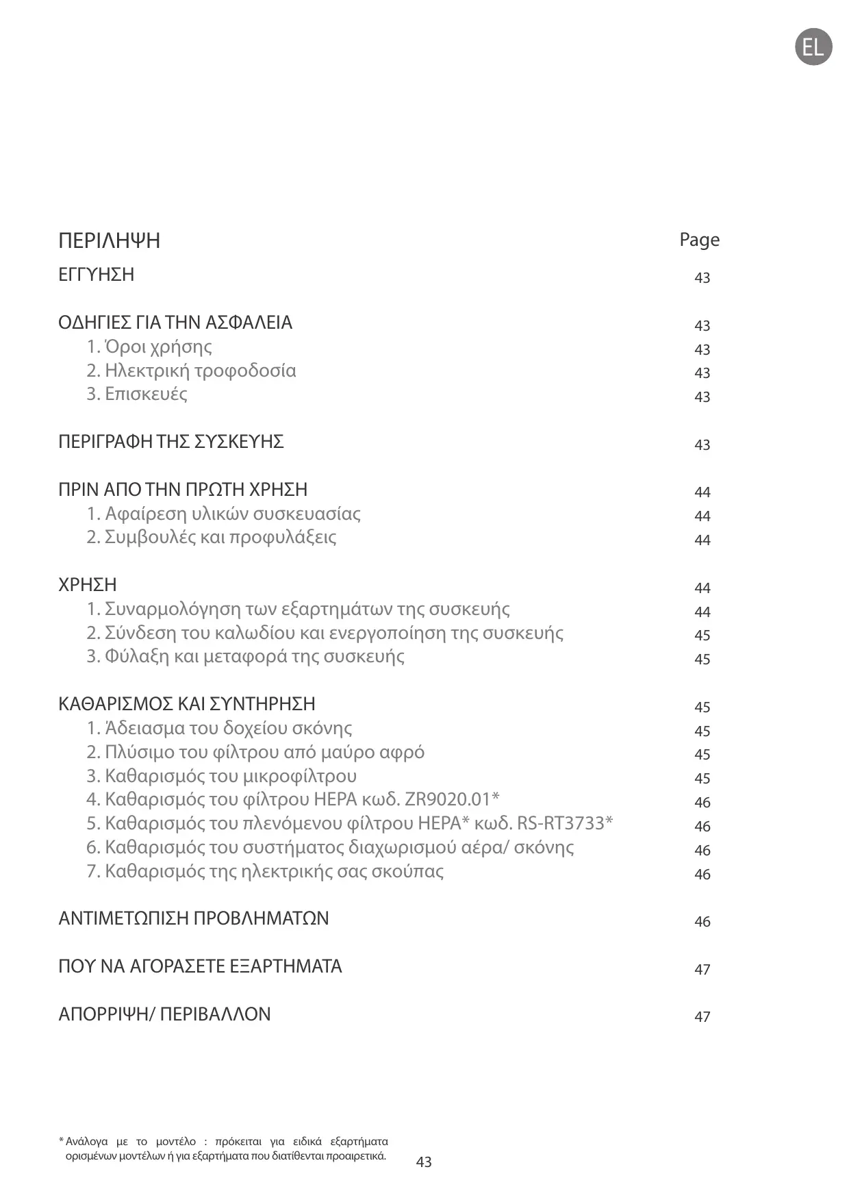Le filtre HEPA lavable* ref RS-RT3733 est disponible chez votre revendeur ou dans les Centres Service Agréés.