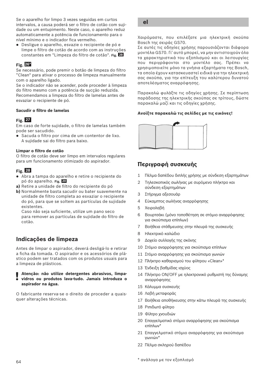 Por favor, guarde o manual de instruções e junte-o ao aspirador sempre que o entregar a terceiros. Die Gebrauchsanweisung bitte aufbewahren. Bei Weitergabe des Staubsaugers an Dritte bitte Gebrauchsanweisung mitgeben. en