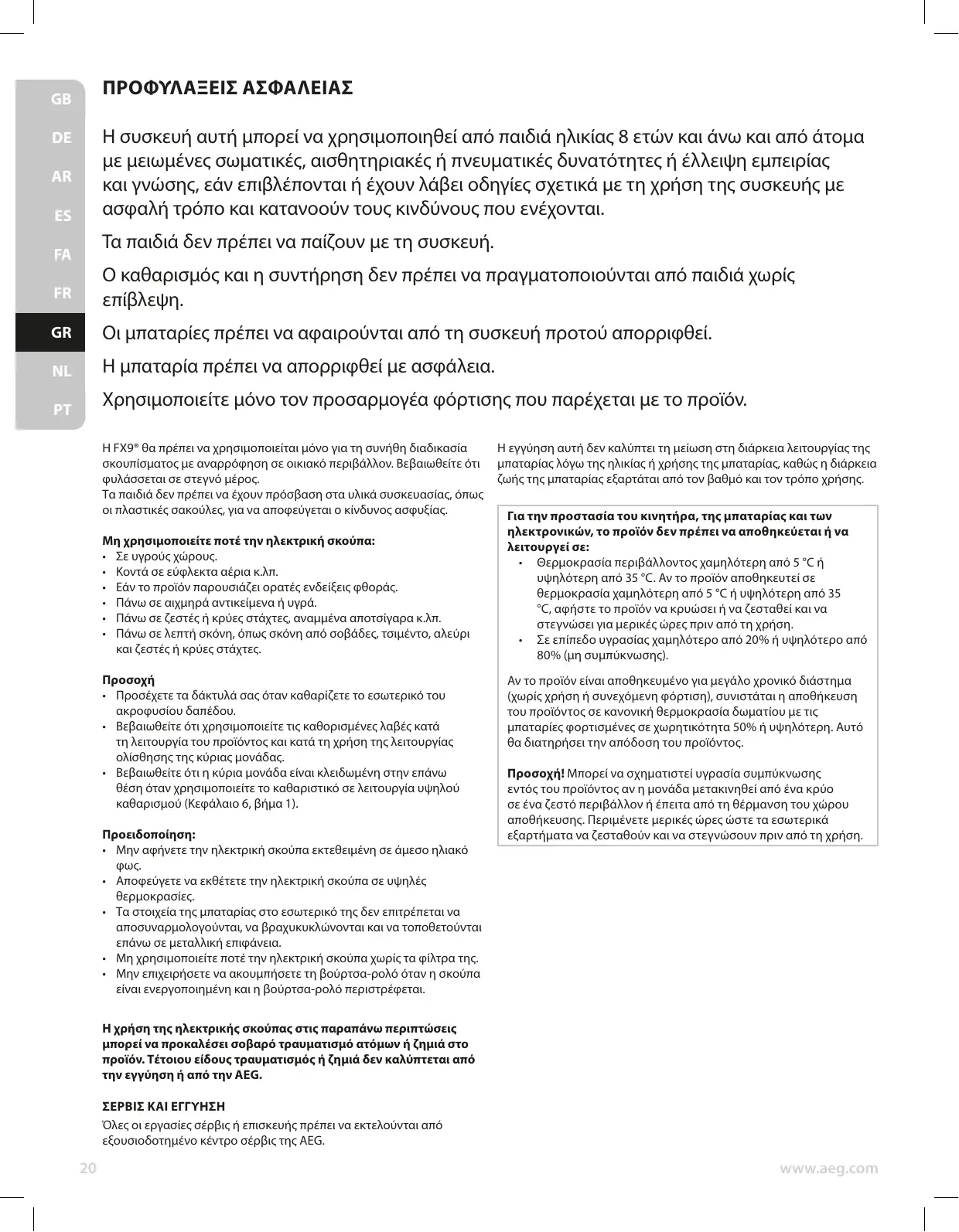 FX9-1-4IG - Ασύρματο σκουπάκι AEG - Notice d'utilisation et mode d'emploi gratuit