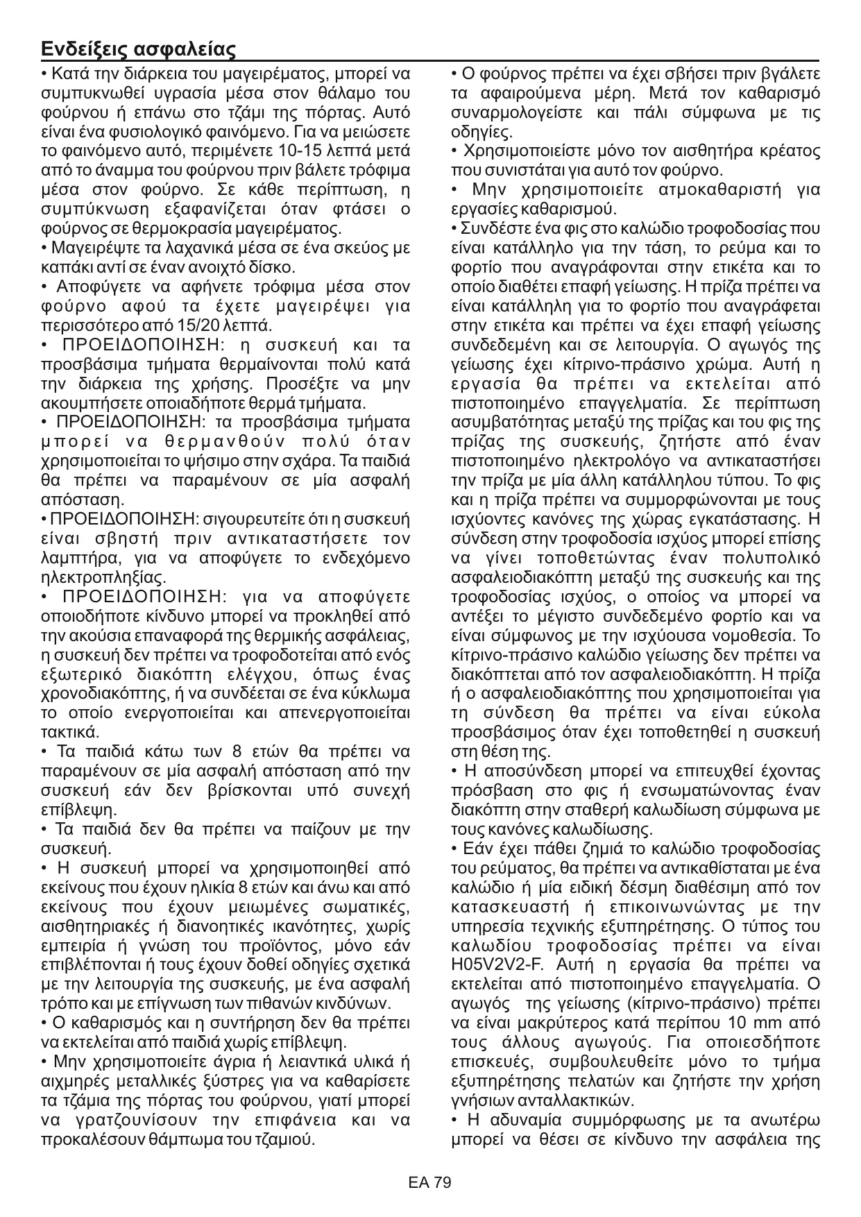 15/20 minutos después de cocinarlos. • ATENCIÓN: el electrodoméstico y todas sus piezas se calientan durante el uso. Tenga cuidado de no tocar las partes calientes. • ATENCIÓN: las piezas accesibles pueden calentarse cuando el grill está funcionando. Mantenga el aparato fuera del alcance de los niños. • Si el cable de alimentación está dañado, debe sustituirse por un cable o un haz de cables especial comercializado por el fabricante; también puede ponerse en contacto con el departamento de atención al cliente. • El cable de alimentación debe ser de tipo H05V2V2-F. • Esta operación debe realizarla un profesional debidamente cualificado. El conductor de toma de tierra (amarillo y verde), debe ser aproximadamente 10 mm más largo que los otros conductores. Para cualquier reparación, diríjase únicamente a un centro de asistencia técnica autorizado y solicite que se empleen recambios originales. • El incumplimiento de r las indicaciones anteriores puede poner en peligro la seguridad del electrodoméstico y anular la garantía. • Los excesos de material deben retirarse antes de limpiar. • Una interrupción prolongada de la corriente durante una fase de cocción puede causar una avería en el monitor. Póngase en contacto con el servicio de atención al cliente si esto ocurre. • El electrodoméstico no debe instalarse detrás de una puerta decorativa para evitar que se caliente en exceso.