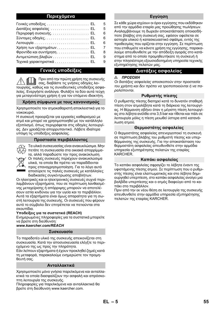 Si el regulador de presión está averiado y el aparato se sobrecalienta, será el termostato de seguridad el que se ocupe de desconectar el aparato. Para el rearme del termostato de seguri-dad, póngase en contacto con el Servicio Técnico de Kärcher.