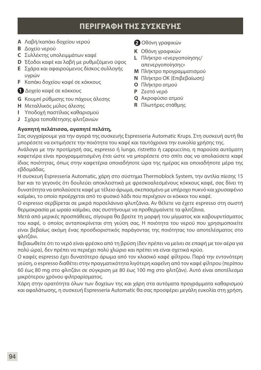 Téléchargez la notice de votre Καφετιέρα au format PDF gratuitement ! Retrouvez votre notice ESSENTIAL EA8161 - KRUPS et reprennez votre appareil électronique en main. Sur cette page sont publiés tous les documents nécessaires à l'utilisation de votre appareil ESSENTIAL EA8161 de la marque KRUPS.