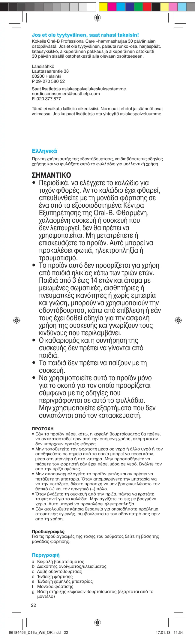 Téléchargez la notice de votre Ηλεκτρική οδοντόβουρτσα au format PDF gratuitement ! Retrouvez votre notice PRO 600 3D - ORAL-B et reprennez votre appareil électronique en main. Sur cette page sont publiés tous les documents nécessaires à l'utilisation de votre appareil PRO 600 3D de la marque ORAL-B.