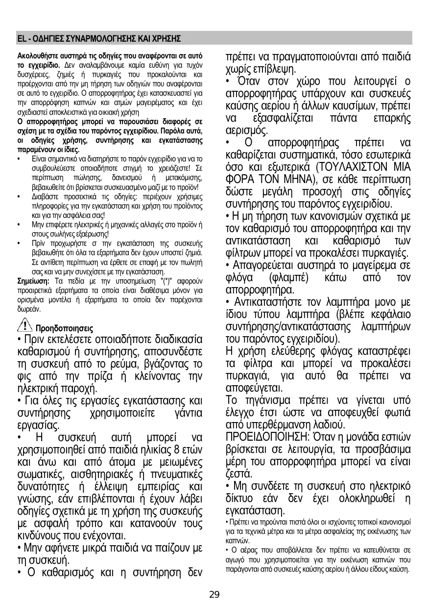 Aténgase estrictamente a las instrucciones del presente manual. Se declina cada responsabilidad por eventuales inconvenientes, daños o incendios provocados al aparato originados por la inobservancia de las instrucciones colocadas en este manual. La campana extractora ha sido ideada para la aspiración de humos y vapores producidos durante la cocción y para el uso doméstico.