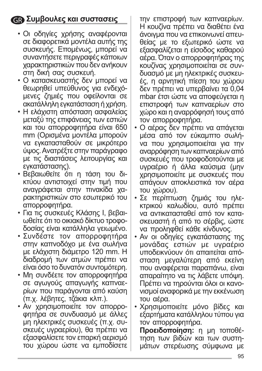 Ne pas évacuer l’air à travers un tube flexible utilisé pour l’aspiration des fumées des appareils alimentés au gaz ou avec d’autres combustibles (ne pas utiliser avec des appareils ayant une seule sortie d’air dans la pièce).