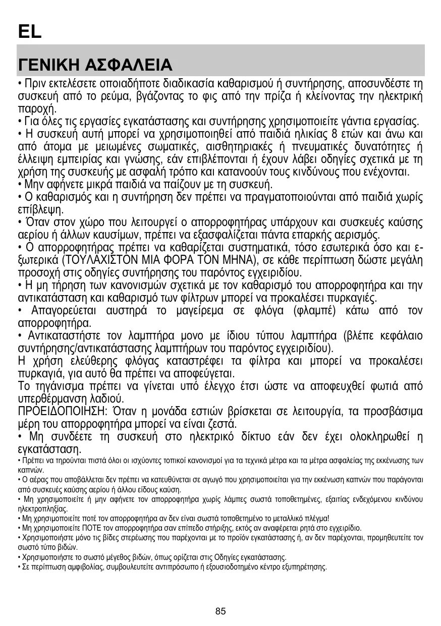 • Anders, contacteer onze Klantenservice (Het telefoonnummer staat in het garantieboekje). • Para la sustitución de la lámpara sólo utilizar el tipo de lámpara indicado en la sección de mantenimiento/sustitución de este manual. El uso de una llama libre es perjudicial para los filtros y puede provocar incendios, por lo tanto, debe evitarse en cualquier caso. Los fritos debe realizarse con cuidado para evitar que el aceite caliente prenda fuego. ATENCIÓN: Cuando la placa de cocción está funcionando las partes accesibles de la campana pueden calentarse. • No conectar la unidad a la red eléctrica hasta que la instalación sea totalmente completada.