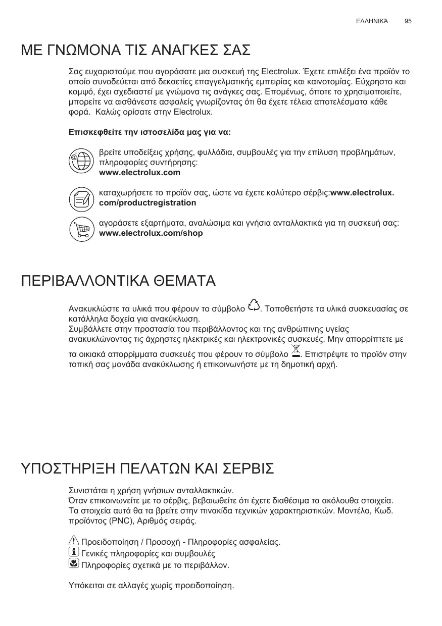 βeīte UTIOBéIεIcXpHαns, φuλλáδια, συμβouLæs για ητν επίλοιη προβληματων, Πληροφορες Συντήρησας: www.electrolux.com