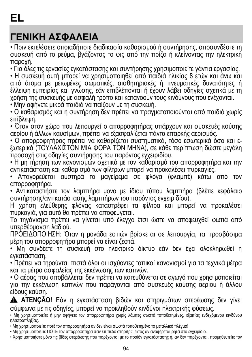Les LEDS garantissent un éclairage optimal, une durée jusqu’à 10 fois supérieures aux ampoules traditionnelles et permettent une épargne de 90% en énergie électrique. Pour remplacer les lampes, contactez le centre service agréé pour pièces de rechange.