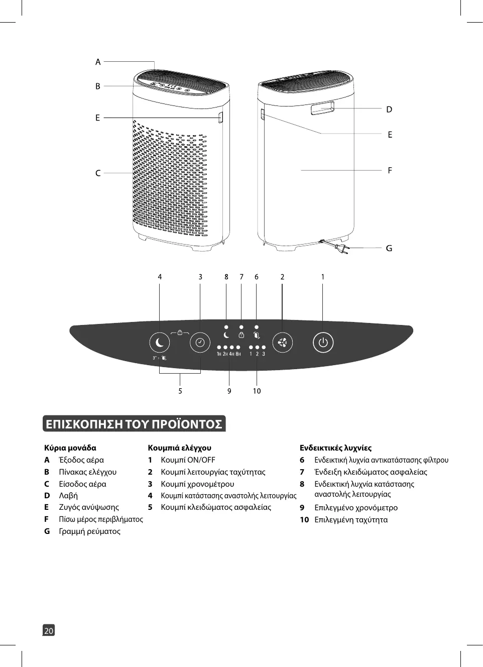 6 Indicateur de remplacement de filtre 7 Indicateur de la sécurité enfants 8 Indicateur de mode veille 9 Minuteur sélectionné 10 Vitesse sélectionnée