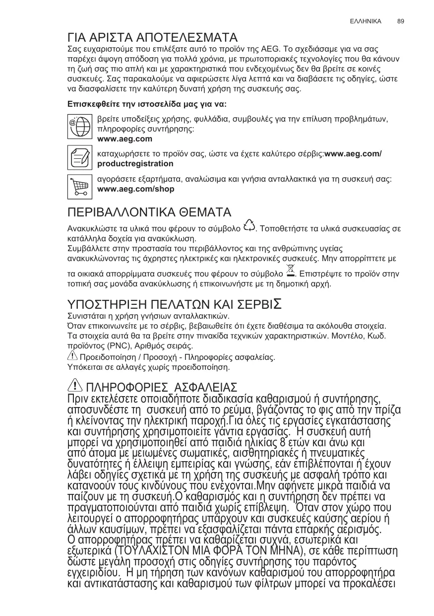 Enregistrer votre produit pour obtenir un meilleur service : www.aeg.com/productregistration Acheter des accessoires, consommables et pièces de rechange d’origine pour votre appareil : www.aeg.com/shop
