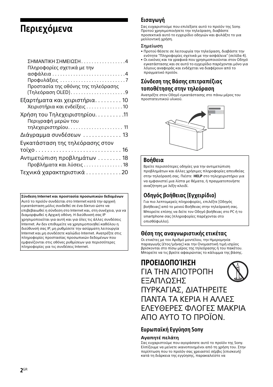 (Soporte de pared) en la página del producto de su modelo de televisor. www.sony.eu/support/