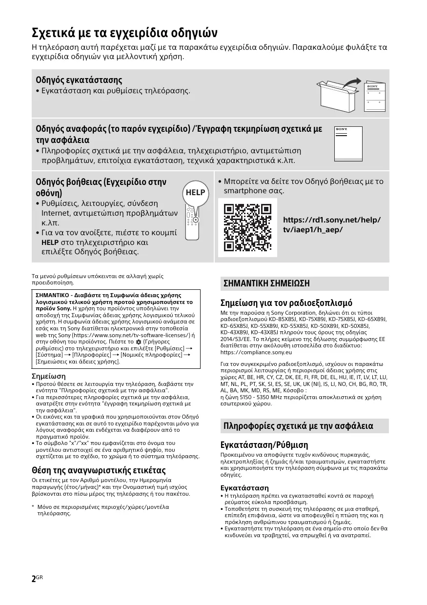 Téléchargez la notice de votre Τηλεόραση au format PDF gratuitement ! Retrouvez votre notice KD-55X85J - KD-65X85J - KD-75X85J - KD85X85J - SONY et reprennez votre appareil électronique en main. Sur cette page sont publiés tous les documents nécessaires à l'utilisation de votre appareil KD-55X85J - KD-65X85J - KD-75X85J - KD85X85J de la marque SONY.