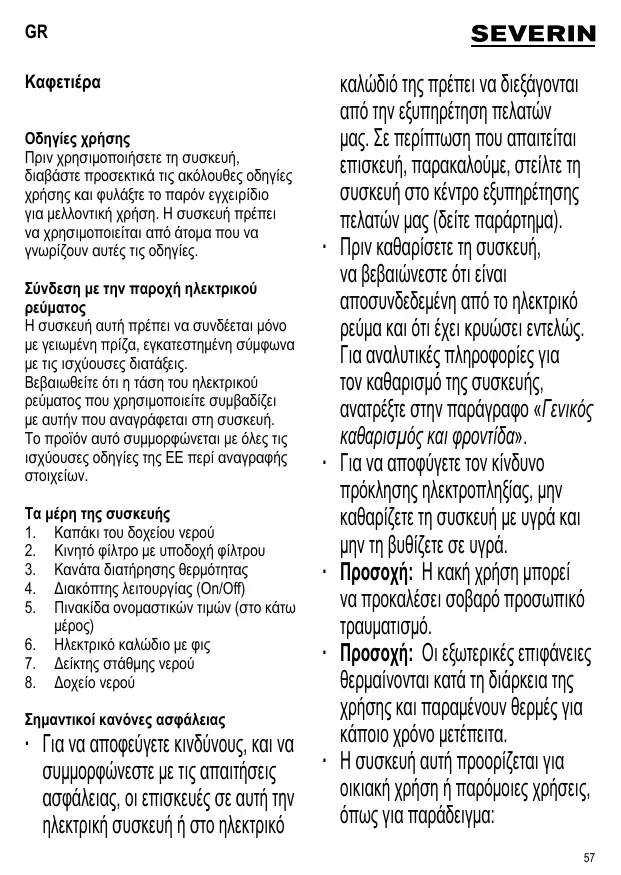 KA 9475 - καφετιέρα SEVERIN - Δωρεάν εγχειρίδιο χρήσης