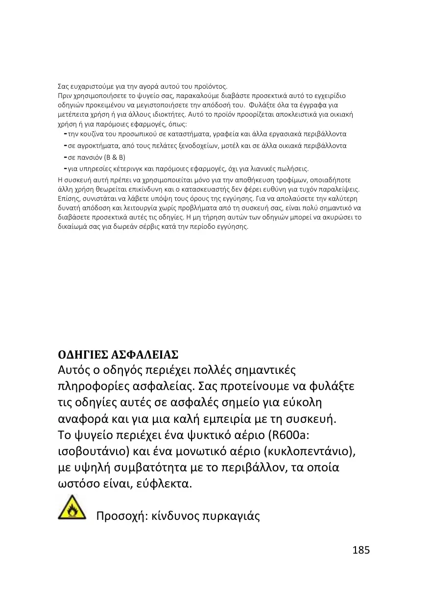 - pour les services de restauration et des applications similaires non destinées à une vente au détail. Cet appareil doit être utilisé uniquement à des fins de conservation d'aliments, toute autre utilisation est considérée comme dangereuse et le fabricant ne sera pas responsable de toute omission. De plus, il est recommandé de prendre note des conditions de garantie. Pour obtenir la meilleure performance possible et un fonctionnement sans problème de votre appareil, il est très important de lire attentivement ces instructions. Tout non-respect de ces instructions peut annuler votre droit à des services gratuits pendant la période de garantie.
