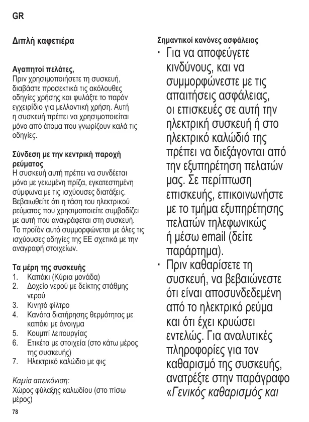 Cet appareil doit être branché sur une prise de courant avec terre installée selon les normes en vigueur. Assurez-vous que la tension d’alimentation correspond à la tension indiquée sur la plaque signalétique de l’appareil. Ce produit est conforme à toutes les directives relatives au marquage “CE”. Familiarisez-vous avec votre appareil 1. Couvercle (élément principal) 2. Réservoir d’eau avec indicateur du niveau d’eau 3. Porte-filtre pivotant 4. Verseuse isotherme avec couvercle perméable Clientèle par téléphone ou courriel (voir annexe). ∙ Avant de nettoyer l’appareil, débranchez toujours la fiche de la prise de courant et laissez l’appareil refroidir suffisamment. Pour des informations détaillées concernant le nettoyage de l’appareil, veuillez vous référer au paragraphe Entretien et nettoyage. ∙ Pour éviter le risque de chocs électriques, ne pas