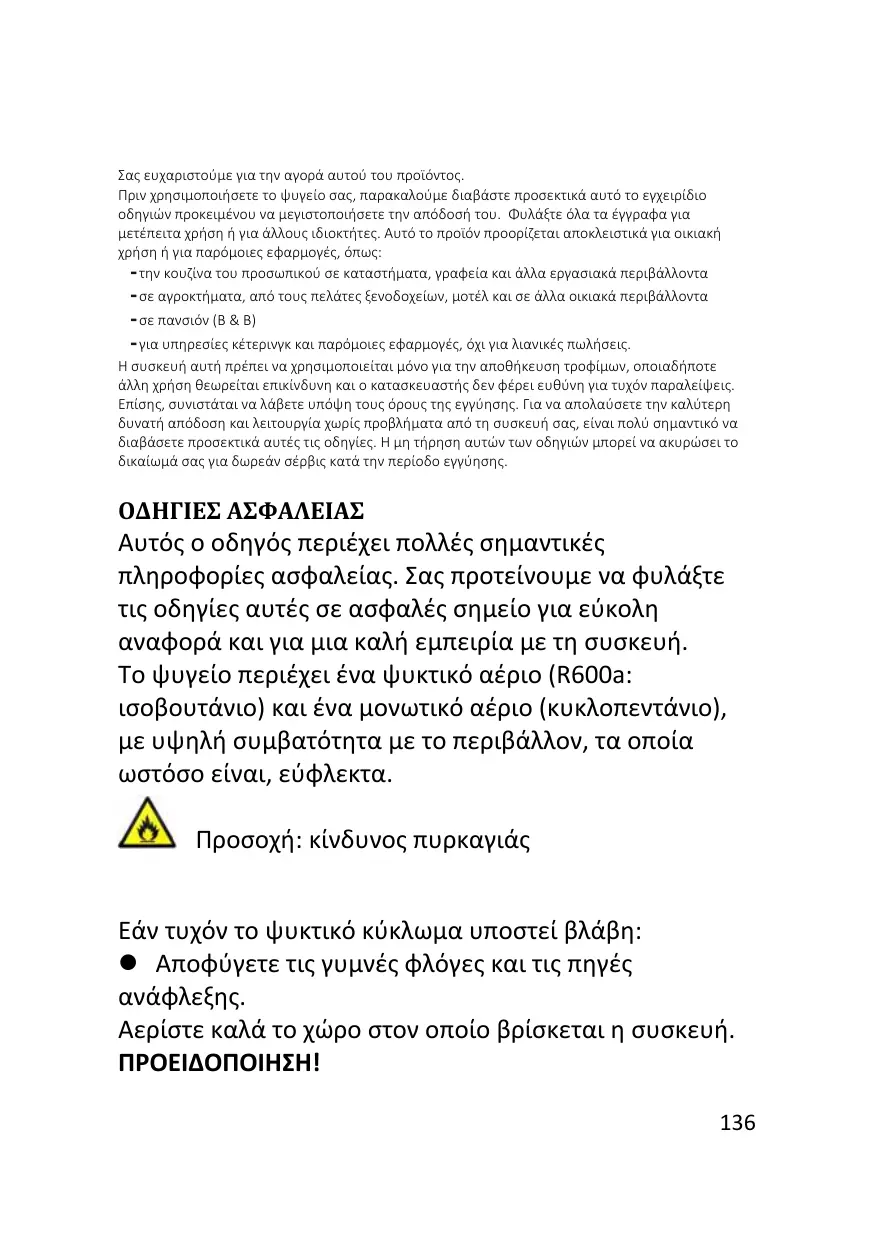  Evite llamas desnudas y fuentes de ignición. Ventile a fondo la estancia donde se encuentre situado el electrodoméstico. 60