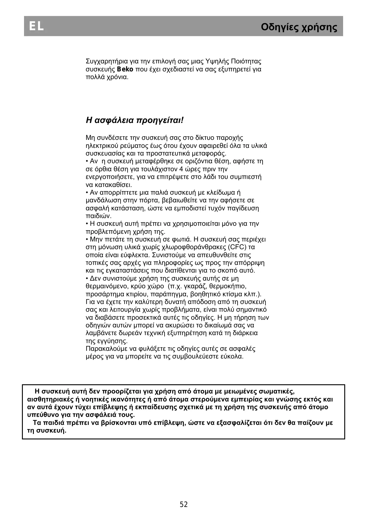 Συγχαρητήρια για την επιλογή σας μιας Υψηλής Ποιότητας συσκευής Beko που έχει σχεδιαστεί να σας εξυπηρετεί για πολλά χρόνια.
