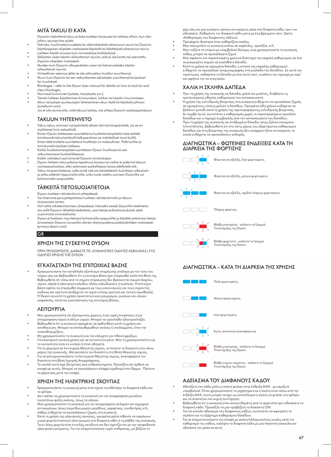 Une fois que vous vous serez enregistré pour la garantie de 2 ans, votre appareil Dyson sera couvert pour les pièces et la main-d’œuvre pendant 2 ans à compter de la date d’achat, conformément aux conditions de garantie. Si vous avez la moindre question concernant votre appareil Dyson, consultez le site www.dyson.fr/support (FR), www.dyson.be/ support (BE) ou www.dyson.ch/support (CH) pour obtenir une aide en ligne, des conseils généraux et des informations utiles sur Dyson. Vous pouvez également appeler le Service consommateurs Dyson et leur communiquer le numéro de série de l’appareil et les détails concernant la date/le lieu d’achat. ASSISTENZA CLIENTI DYSON GRAZIE PER AVER SCELTO DI ACQUISTARE UN APPARECCHIO DYSON. Dopo aver registrato la garanzia 2 anni, le parti e la manodopera del vostro apparecchio Dyson saranno coperte per 2 anni dalla data d'acquisto, in base alle condizioni previste dalla garanzia. Se avete domande sul vostro apparecchio Dyson visitate il sito www.dyson.it/ support (IT) oppure www.dyson.ch/support (CH) per assistenza online, suggerimenti generici e informazioni utili relative a Dyson. In alternativa, chiamate il servizio assistenza Dyson, tenendo a portata di mano il numero di serie dell'apparecchio e le informazioni su dove e quando e stato acquistato.