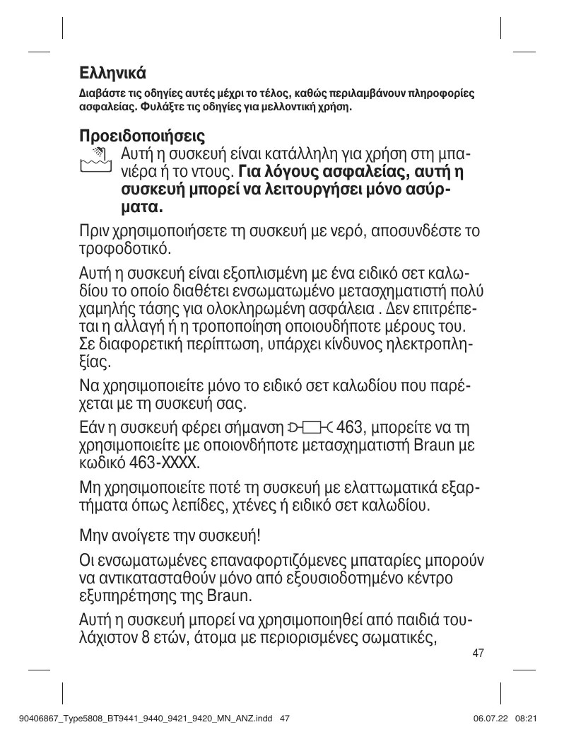 Eav ngouokekun φépεi onμavon D-463, μπopεite va tη χρησιμοιειτε με οποιονδήποτε μεταχηματιοή Braun με κωδικό 463-XXX.