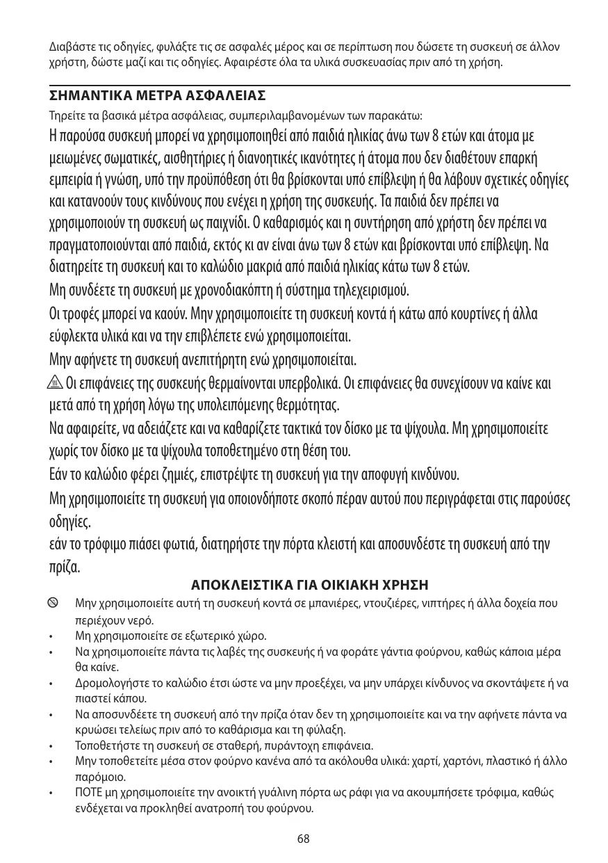 Cet appareil peut être utilisé par des enfants âgés de 8 ans et plus et par des personnes aux aptitudes physiques, sensorielles ou mentales réduites ou ne possédant pas l’expérience et les connaissances suffisantes, pour autant que ces personnes soient supervisées/aient reçu des instructions et soient conscientes des risques encourus. Les enfants ne peuvent pas jouer avec l’appareil. Le nettoyage et l’entretien par l’utilisateur ne doivent pas être effectués par des enfants, à moins qu’ils ne soient âgés de plus de 8 ans et qu’ils soient supervisés. Tenez l’appareil et le câble hors de portée des enfants de moins de 8 ans. Veillez à ne pas connecter l’appareil via une minuterie ou un système de télécommande. Les aliments peuvent brûler. N’utilisez pas l’appareil à côté ou au-dessous de rideaux ou d’autres matériaux combustibles et surveillez-le pendant son utilisation. Ne laissez pas l’appareil sans surveillance en cours d’utilisation. ¬ Les surfaces de l’appareil vont s’échauffer. La chaleur résiduelle permet de maintenir les surfaces chaudes après utilisation. Retirez, videz et nettoyez régulièrement le bac à miettes. N’utilisez pas l’appareil sans le bac à miettes. Si le câble est endommagé, retournez l’appareil afin d’éviter tout risque. N’utilisez pas l’appareil à d’autres fins que celles décrites dans ce mode d’emploi. En cas de flambée des aliments, maintenez la porte fermée et débranchez l’appareil. USAGE MÉNAGER UNIQUEMENT