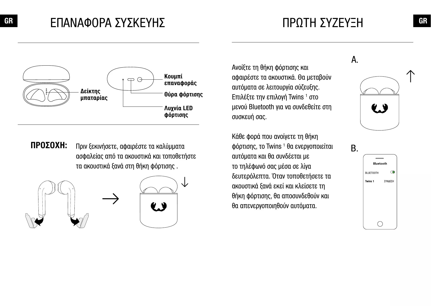 Ouvrez le boîtier de recharge et retirez les écouteurs. Ils passeront automatiquement en mode d’appariement. Sélectionnez les Twins1 dans votre menu Bluetooth pour vous connecter à votre appareil.