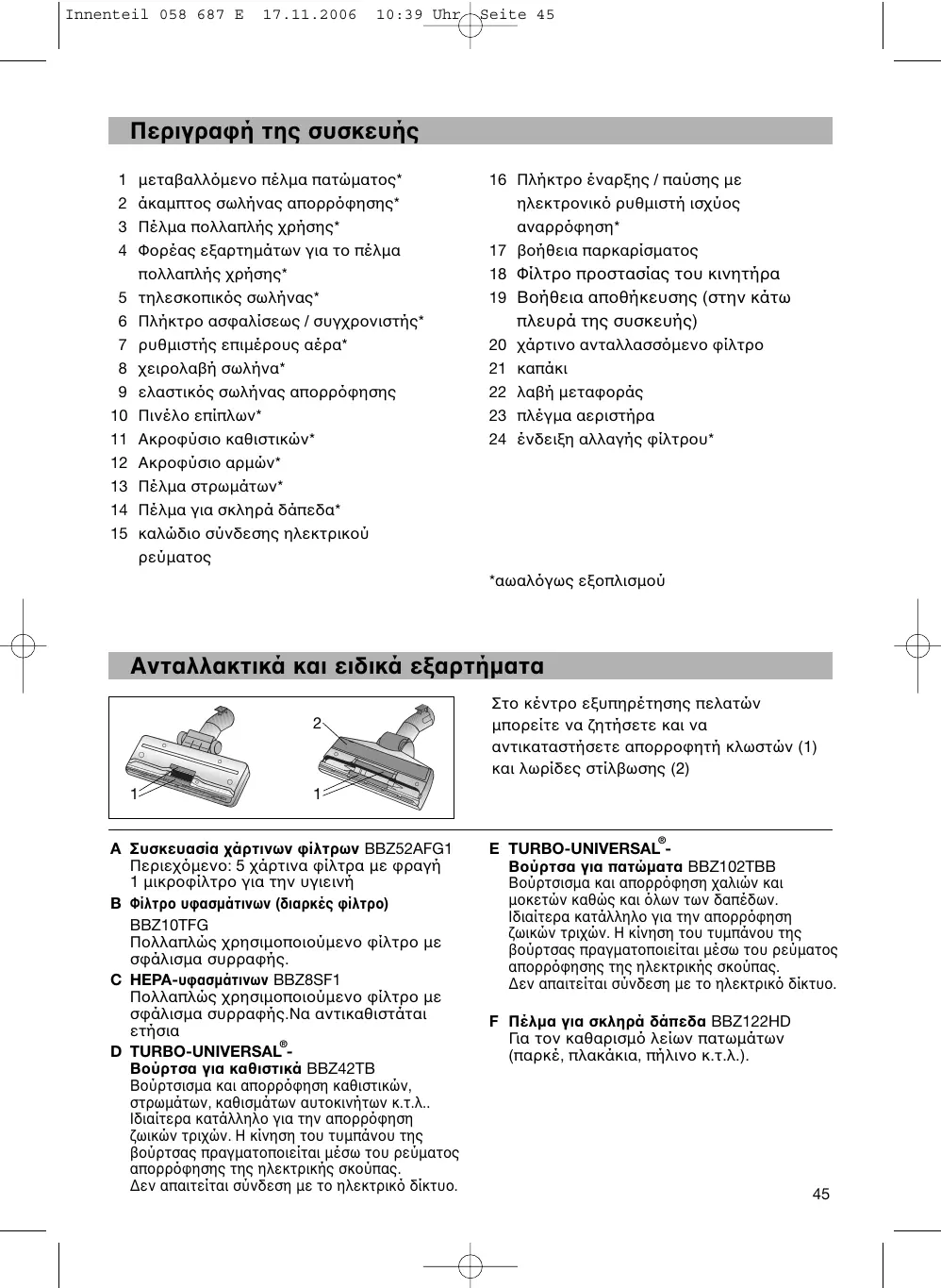 Téléchargez la notice de votre Ηλεκτρική σκούπα au format PDF gratuitement ! Retrouvez votre notice 058687 - BOSCH et reprennez votre appareil électronique en main. Sur cette page sont publiés tous les documents nécessaires à l'utilisation de votre appareil 058687 de la marque BOSCH.