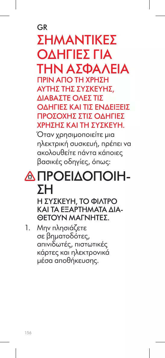AVERTISSEMENT L’APPAREIL, LE FILTRE ET LES ACCESSOIRES CONTIENNENT DES AIMANTS. 1. Tenez l’appareil éloigné des stimulateurs cardiaques, des défibrillateurs, des cartes de crédit et des supports de stockage électroniques.