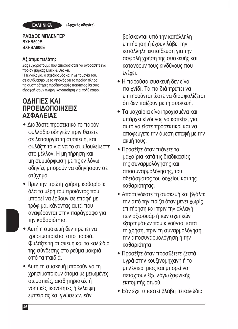 Téléchargez la notice de votre Ραβδομπλέντερ au format PDF gratuitement ! Retrouvez votre notice BXHB500E - BLACK & DECKER et reprennez votre appareil électronique en main. Sur cette page sont publiés tous les documents nécessaires à l'utilisation de votre appareil BXHB500E de la marque BLACK & DECKER.