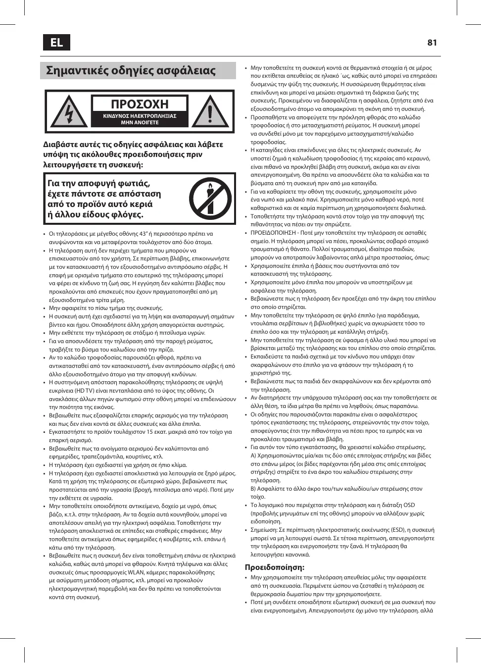 + Les télévisions avec écran de 43" ou plus doivent être soulevées et portées par au moins deux personnes.